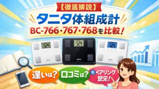 「タニタの体組成計を買いたいけど、BC-766・BC-767・BC-768の違いって何?どれを選べばいいの?」そんな疑問を持っている方、多いですよね。見た目もスペックもよく似ていて、正直どれでもいいのかな…って思いませんか?この記事では、3...