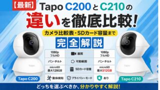 「Tapo C200とC210、どっちを買えばいいの?」そんな疑問、よくわかります!見た目はほぼ一緒なのに、値段が少し違う。何が違うのかわからないまま買うのって、なんかモヤモヤしますよね。この記事では、TP-LinkのTapoシリーズで人気...
