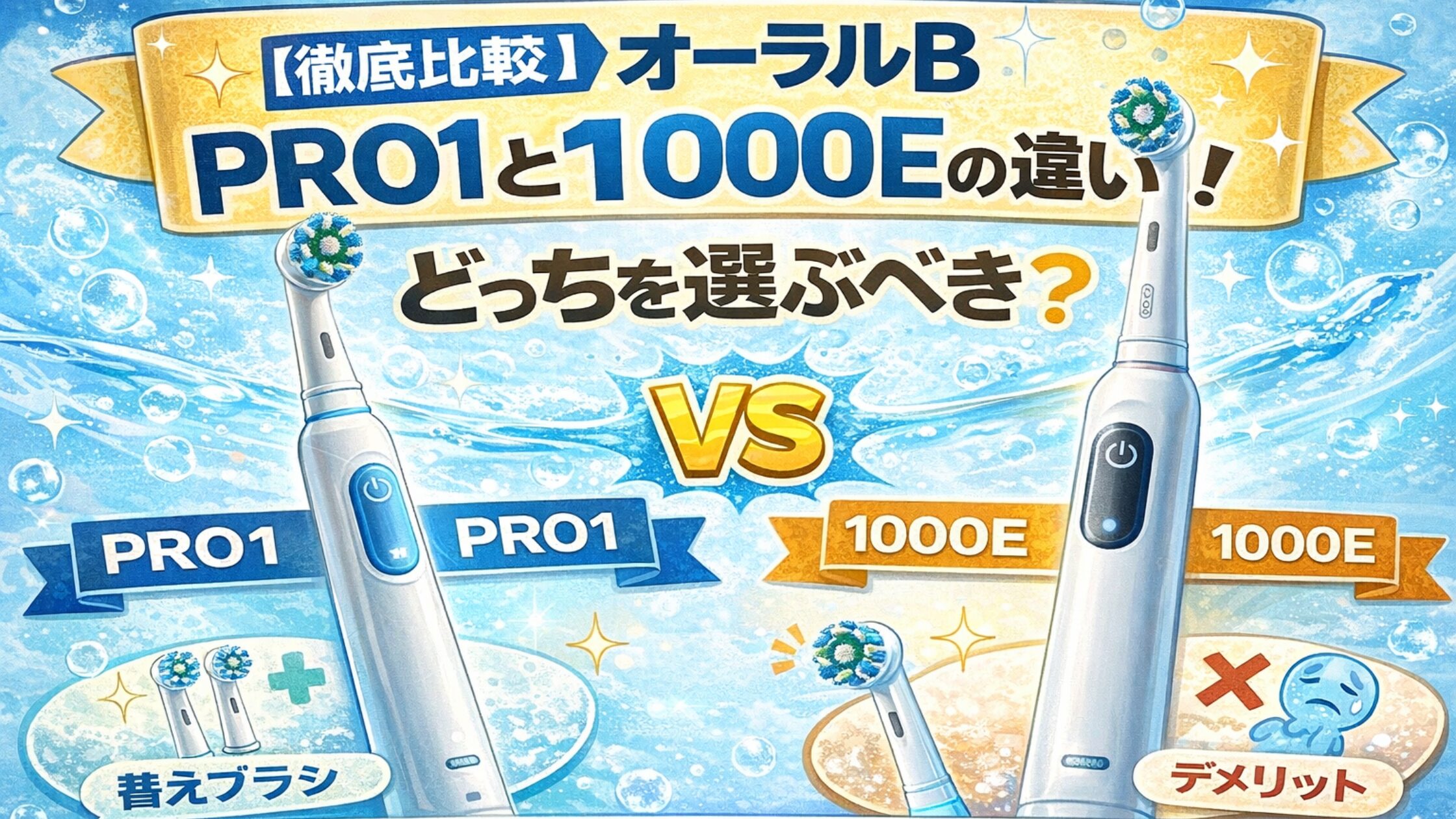 電動歯ブラシを買おうと思って調べていると、必ず候補に上がってくるのが「オーラルb pro1」と「オーラルb 1000E」。どちらも人気モデルで価格帯も近いから、「結局どっちを選べばいいの?」って迷っちゃいますよね。
