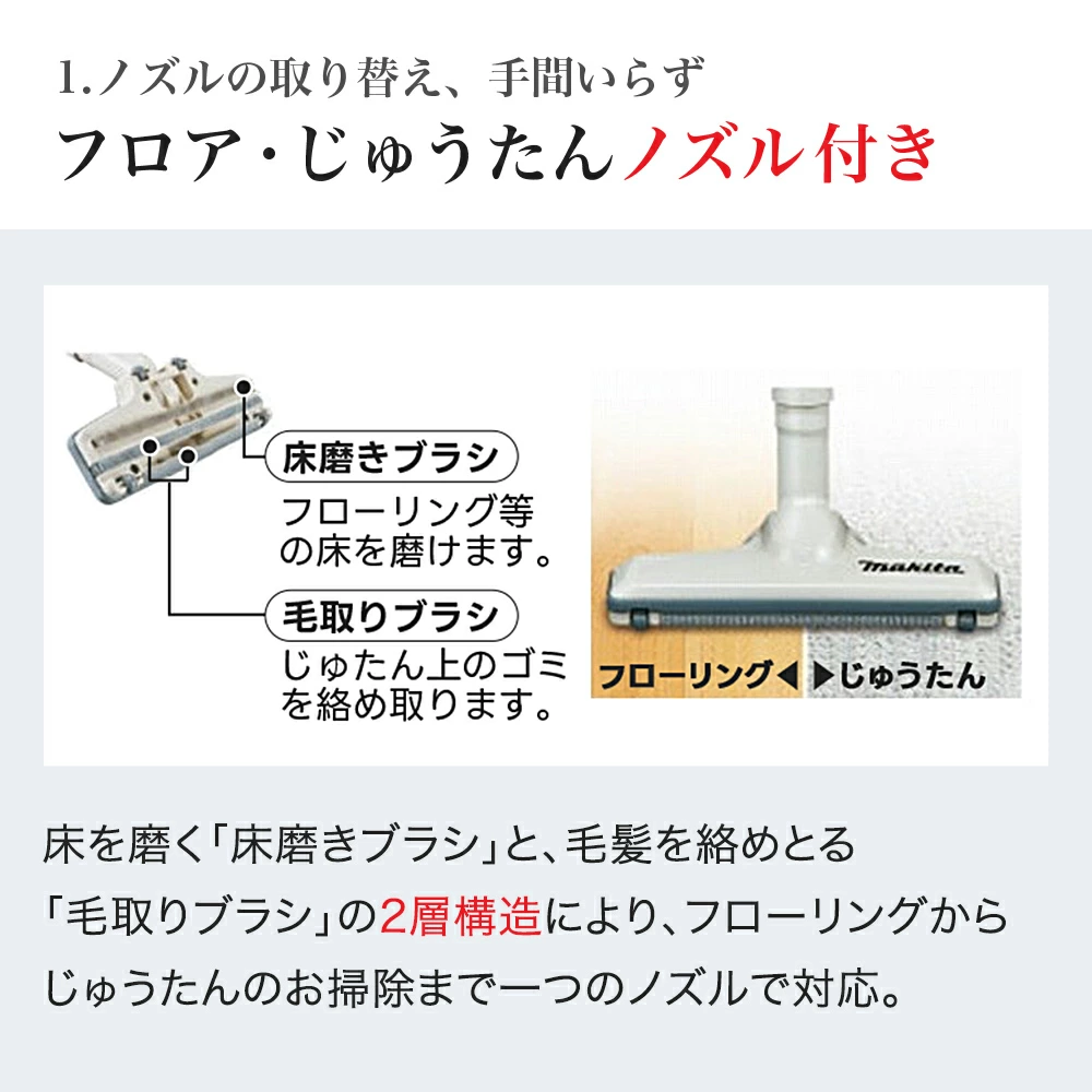 紙パック不要でランニングコストもかからず、スタンドがなくてもコンパクトに収納できる。軽い・安い・丈夫というシンプルさが、マキタの最大の魅力です。