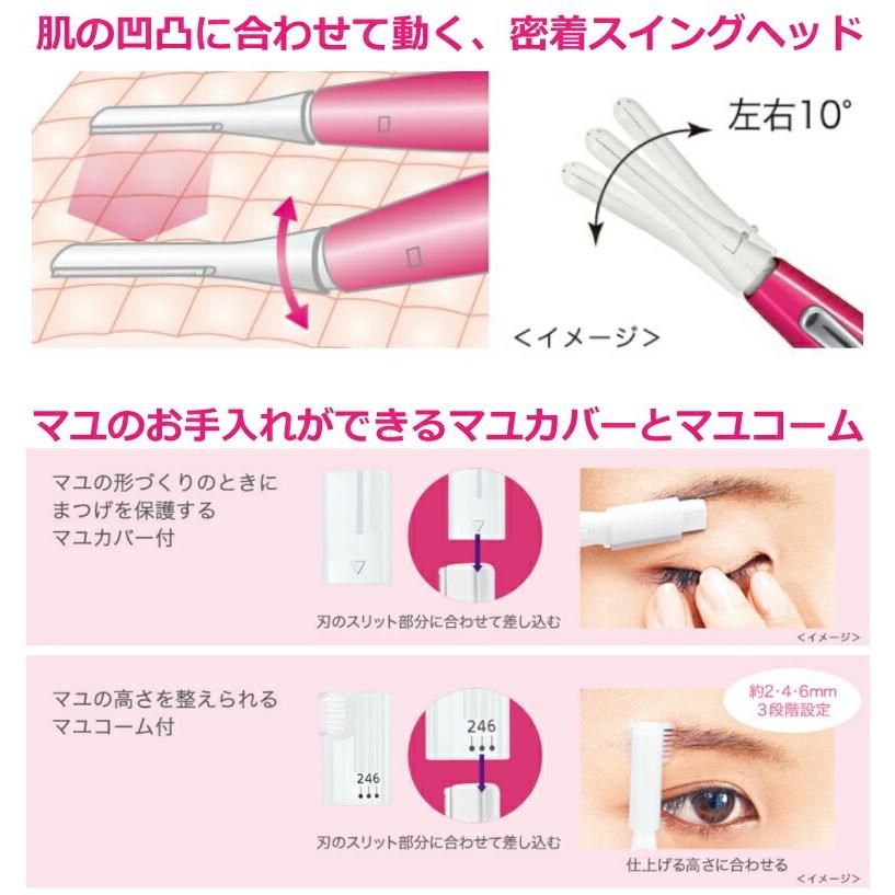 • マユカバー:眉の形を整えるときに使用。刃の幅が狭くなるので、細かい部分も剃りやすい