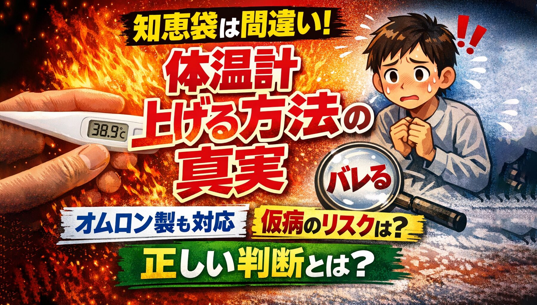 この記事では、知恵袋に溢れる間違った情報を暴きつつ、オムロンなど最新の予測式体温計の仕組みから、なぜ従来の方法が通用しないのか、そして本当に休みたいときに取るべき行動を徹底解説します。