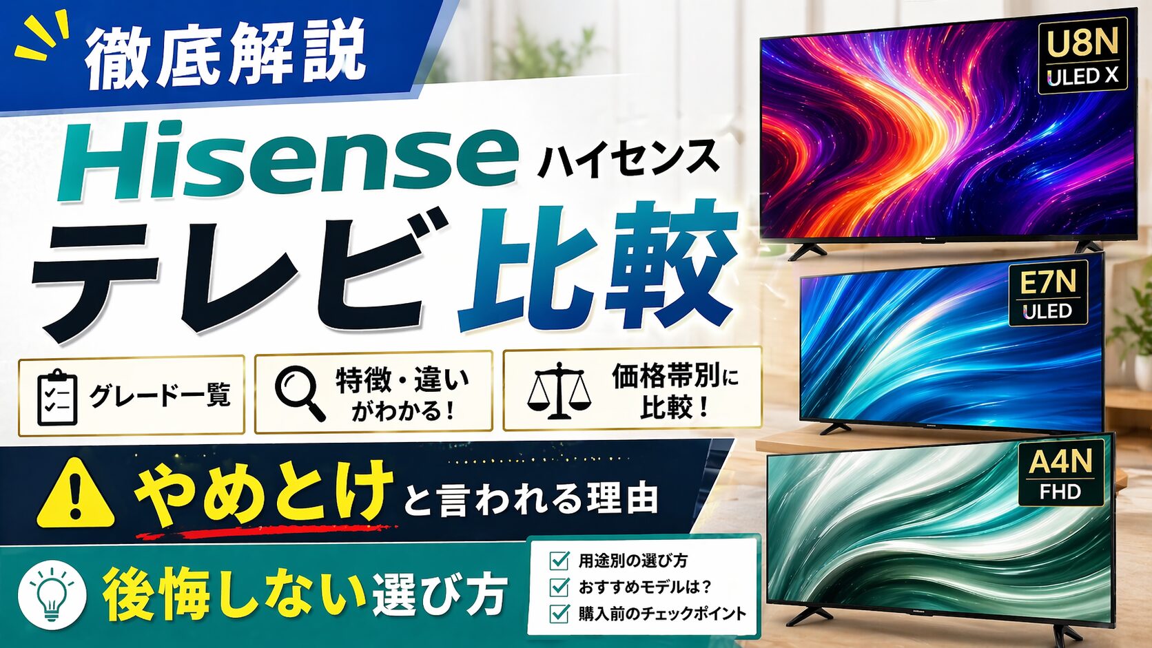 ✅ 結論:「やめとけ」の声は情報が古いか、グレード選びのミスが原因。2025年現在のハイセンスは、コスパ・品質ともに自信を持っておすすめできるブランドです。