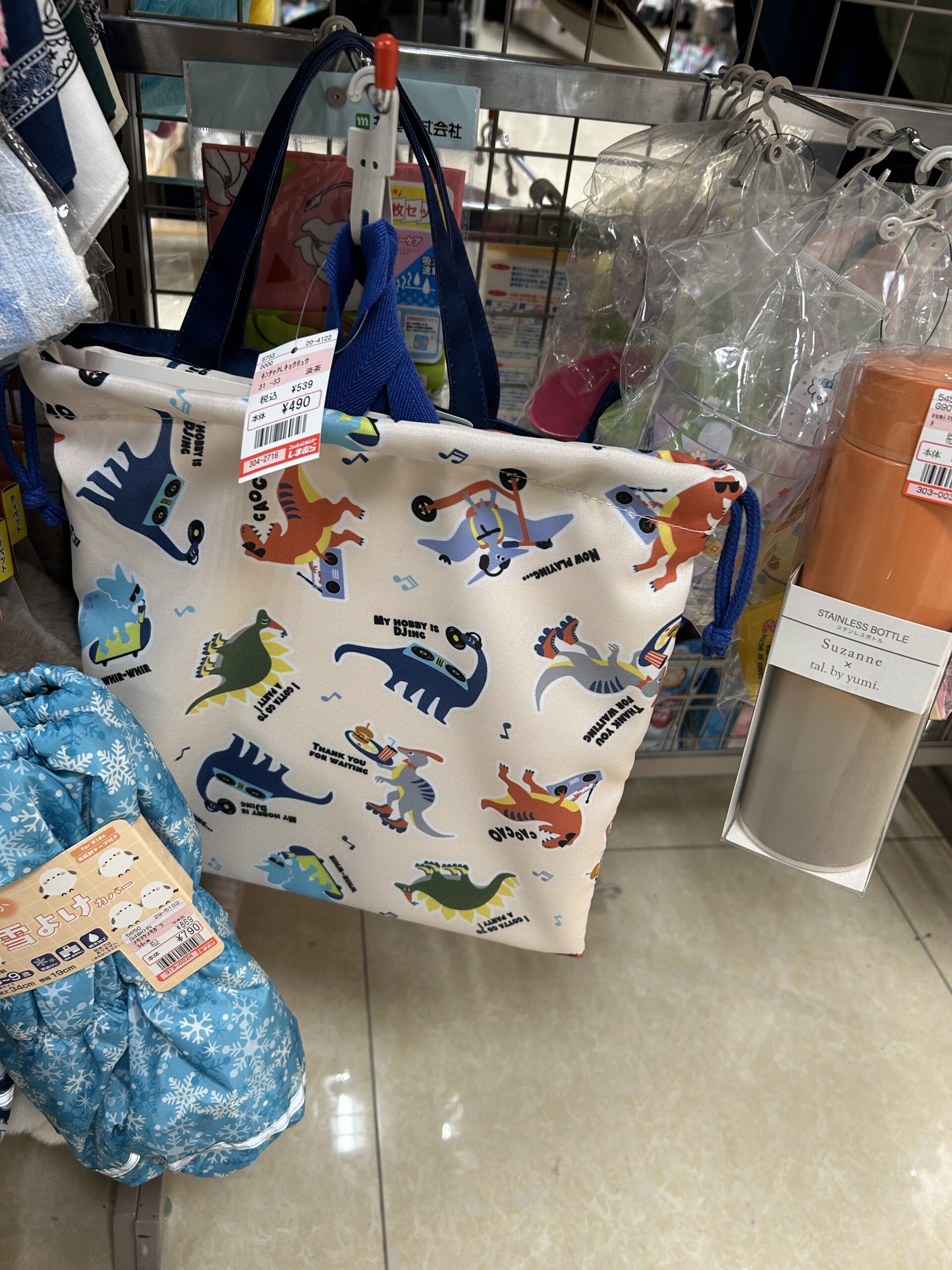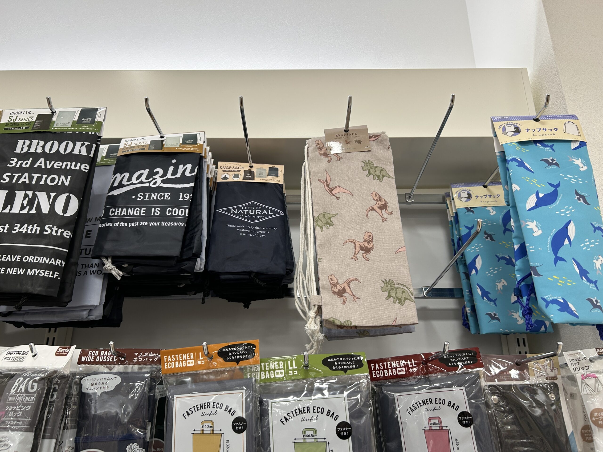 キャンドゥでは、サメやペンギンなどのビニールナップサックが見つかります。新学期シーズンには通学用のしっかりしたナップサックも販売されるので、時期によって品揃えが変わるのもポイントです。
