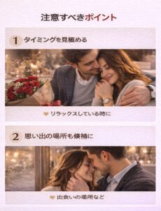 付き合った記念日や彼女の誕生日など、すでに特別な日に重ねることで、より思い出深くなります。