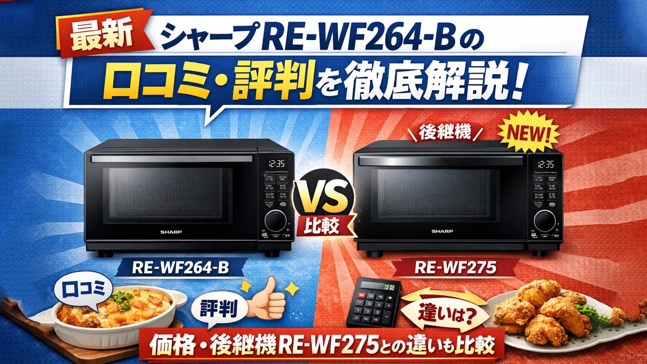 後継機のRE-WF275と悩んでいる方へ一言アドバイスをするなら、「2段調理・パン焼きを重視するならRE-WF264、軽さ・すっきりデザインを重視するならRE-WF275」が基本的な判断軸になります。価格差も含めて自分の使い方に合った方を選んでみてください!