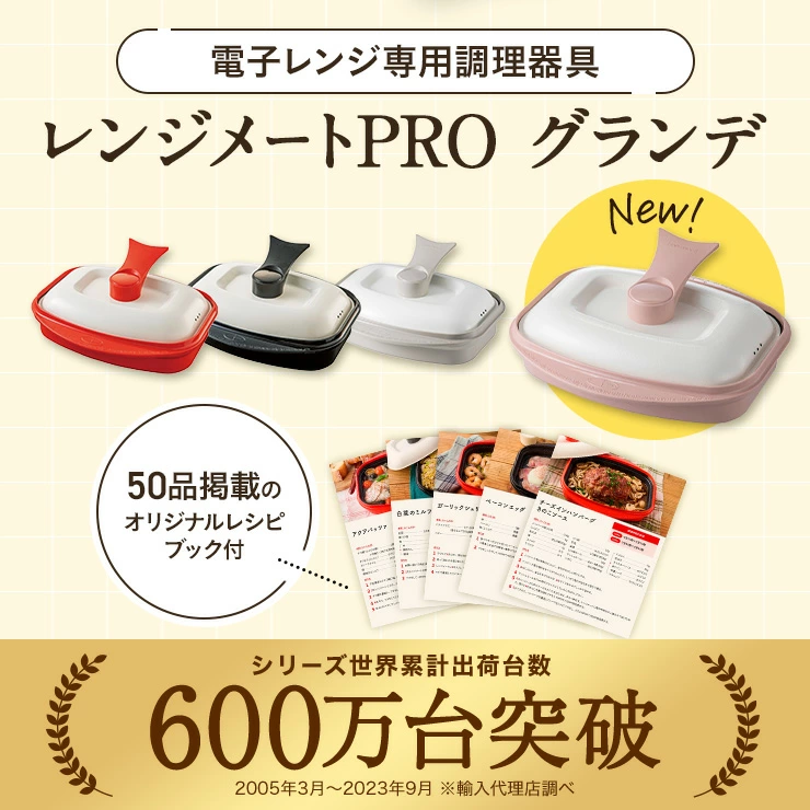 付属のレシピ本は、レンジメートプロが44品、グランデが50品となっています。数字だけ見るとグランデの方が多いですよね。
