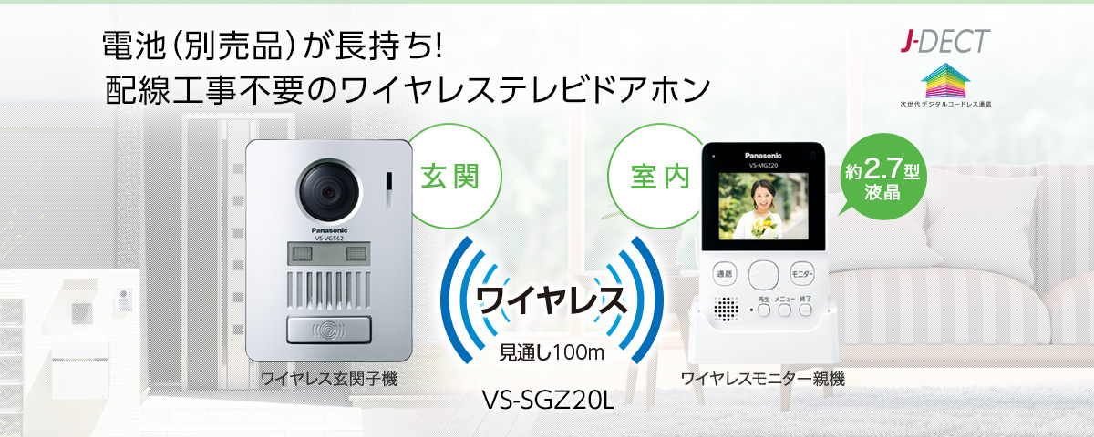 パナソニックのワイヤレステレビドアホン「VS-SGZ20L」と「VS-SGE20LA」。
